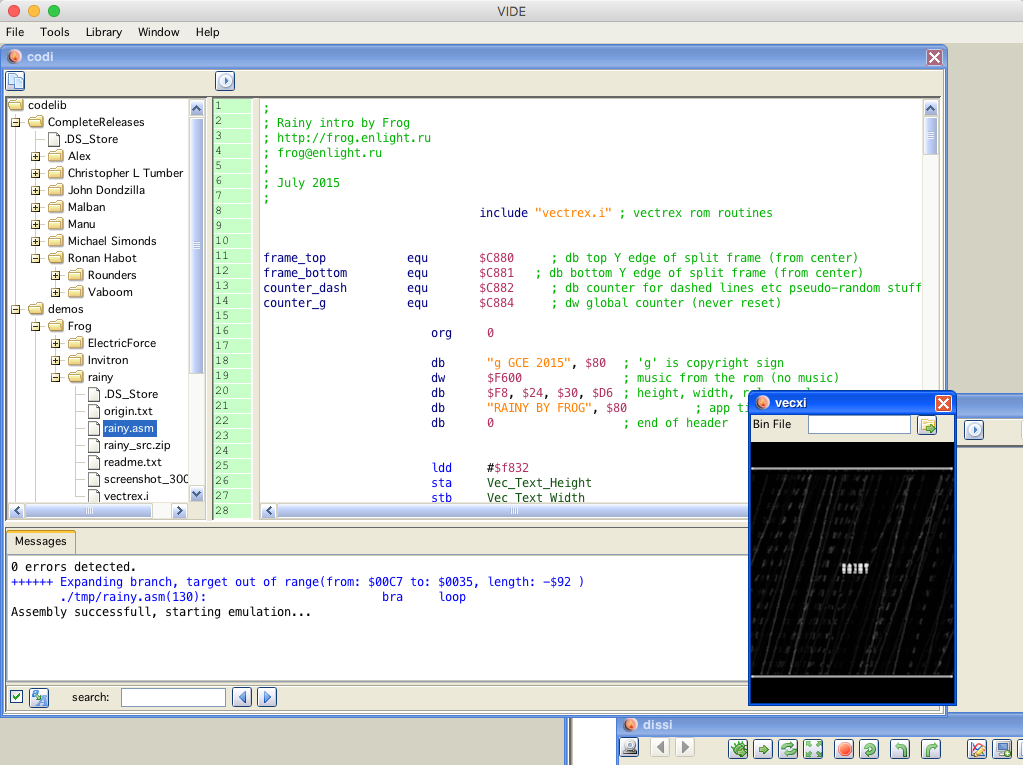 A collection of sources that are free or I have permission to include with VIDE. These are sources to vectrex binaries which can be assembled on the fly and run in vecxi. These sources can be investigated, studied or reused (within reason!).