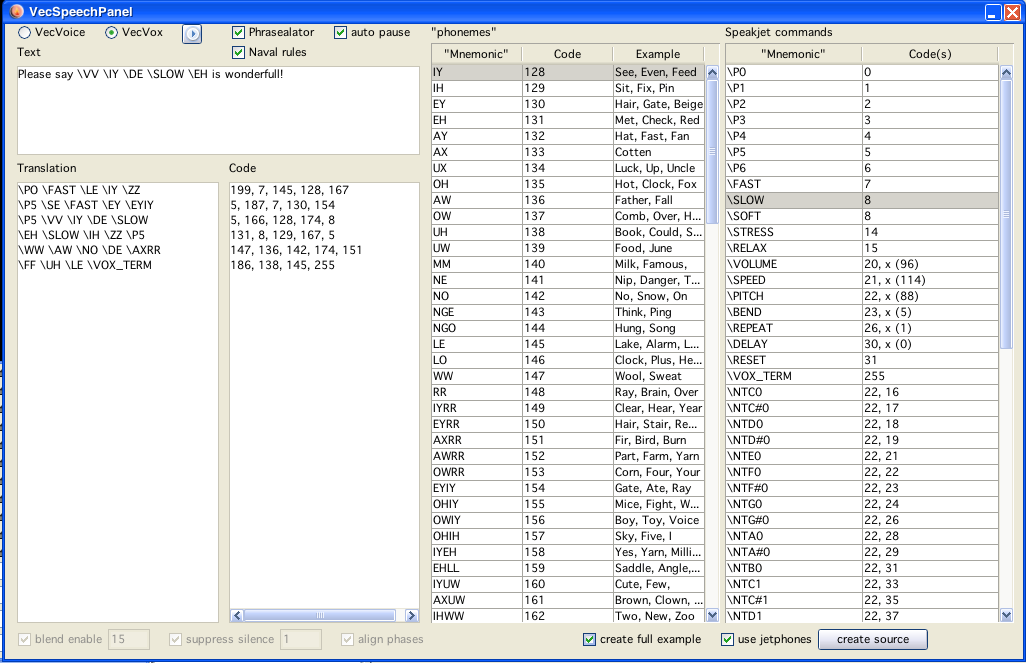 (In the following section only examples for vecvox are discussed, substituting "vecvox" with "vecvoice" is allowed, since the code and examples are nearly identical.)