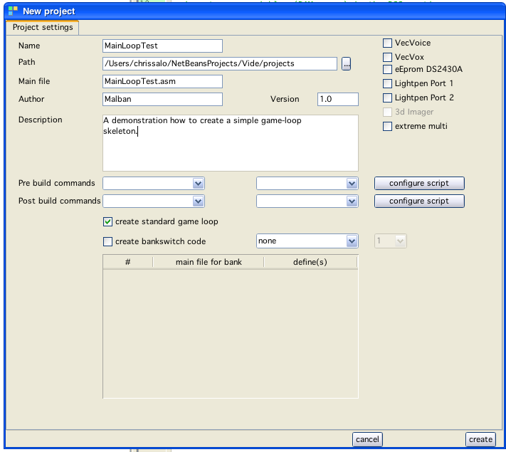 Also the standard vectrex include file: "VECTREX.I" will be copied to the new project directory. The whole scenario than looks like: