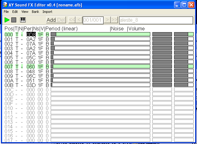 Perhaps in a far, far away future I will do a FX generator/editor or at least a register editor for the AY-soundchip. Until that time this feature might help you doing sound effects.