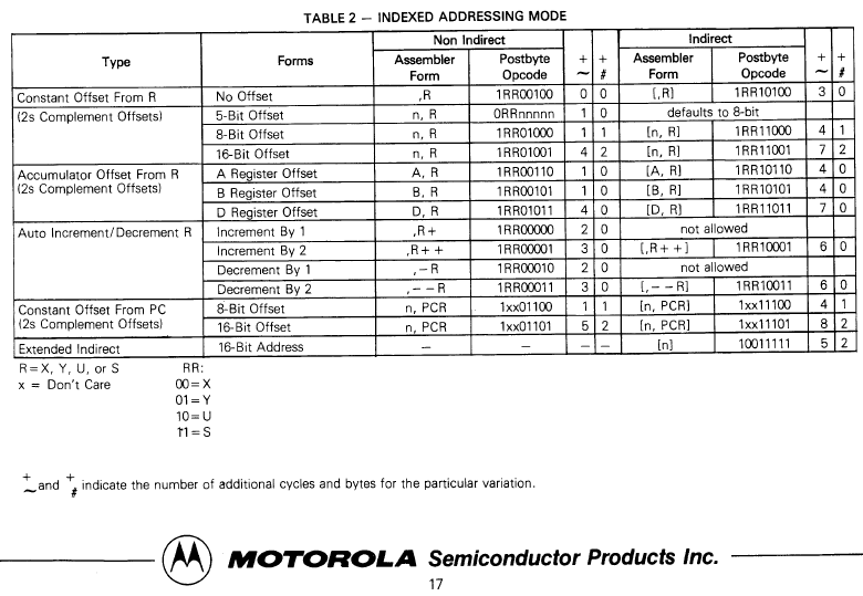Dissi generates data (instead of code), if the postbyte of an indexed instruction is not as described in the above official table.