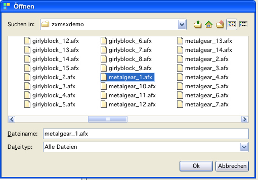 (The name of the generated sources are derived from the chosen file. In the following it is assumed that the name given is "metalgear 1.afx".)