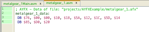 The generated sources are accompanied by an example ayfx player routine.